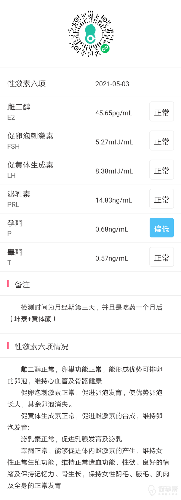 你查孕酮时间是月经第3天,孕酮处于低值 排卵后孕酮值升高