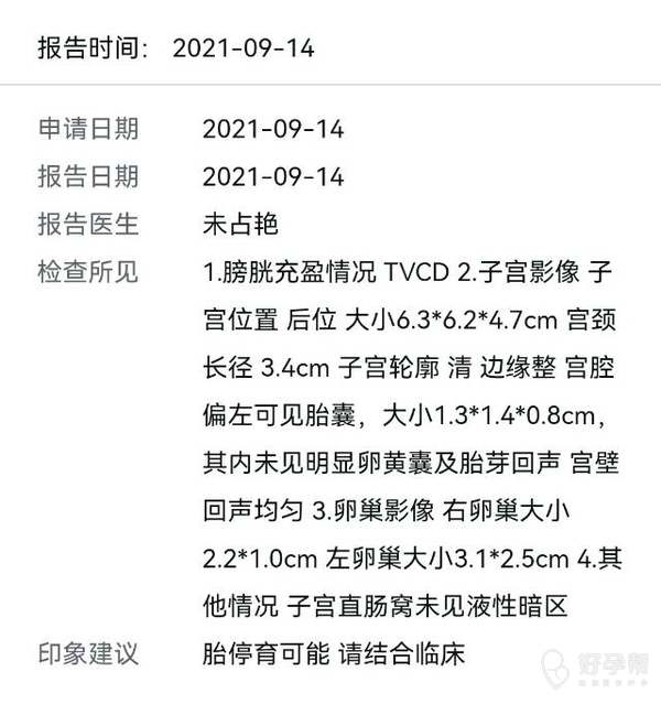 这个要看您停经天数的,停经30来天这样可以继续观望,所以最好提供末次月经,平时月经周期等信息。一般超声打出来胚胎停育可能的话基本上希望不是很大,所以如果有腹痛流血就顺其自然,没有症状还可以继续观望一周。