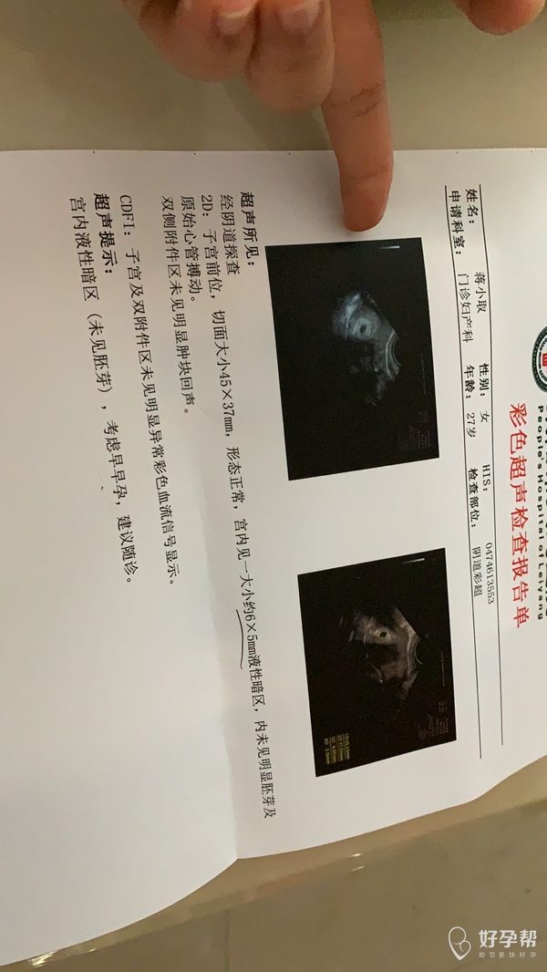 月经周期正常吗 ?如果月经周期正常,停经45天左右就可以看到胎芽及胎心,建议顺其自然,不要盲目保胎 。