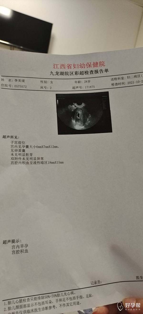 月经周期正常吗 ?如果月经周期正常,停经45天左右就可以看到胎芽及胎心,建议顺其自然,不要盲目保胎 。