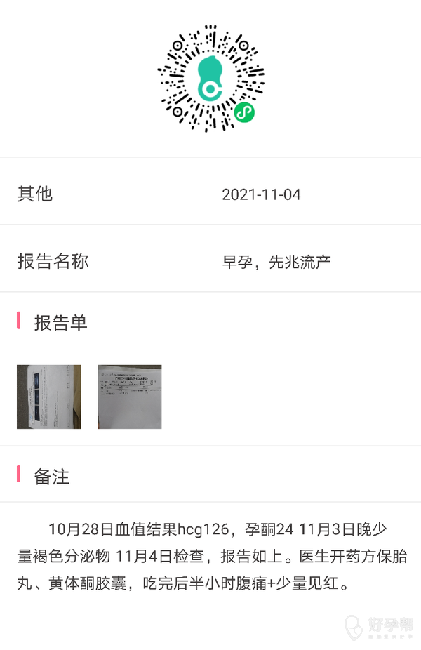 2021年10月28日医院抽血+阴超检查,结果未照到宫内孕囊,左侧附件区有混合回声团,大小约23*21mm,周边见血流信号,子宫直肠窝探及液性暗区,深约16mm。医生诊断左侧附件混合回声团考虑黄体血肿可能;
