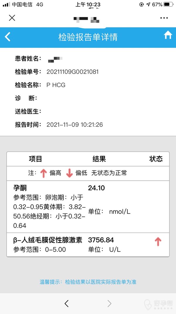 移植的冻囊胚十四天抽血hcg3756孕酮24