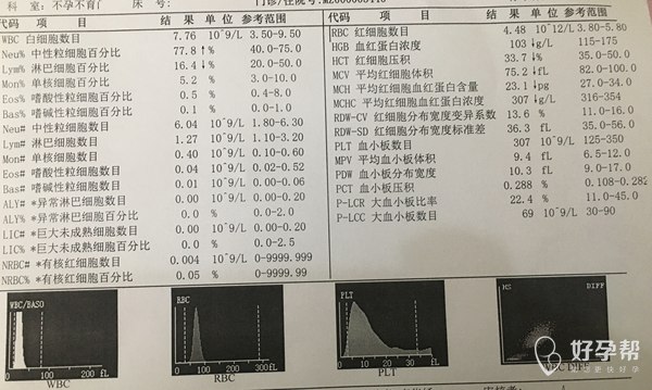 下面这个检验报告就是说明你确实已经怀孕了,而且数值不错,上面的血常规提示有一定的贫血。但是没大问题,加强营养就行了,目前没有什么需要注意的,这个季节不要着凉就行了,再就是一定要遵医嘱,及时的按医嘱规定到医院产检。