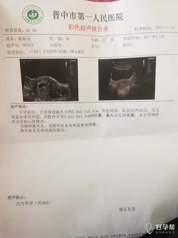 你好医生末次月经9月19日11月17日检查可