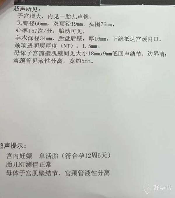 NT结果正常,胎盘位置低置,后期可能会长上去,不能同房,避免剧烈运动,宫颈管液体,不多,可休息观察,如果阴道流血多及时就诊,子宫肌瘤比较小,暂时不需要处理。