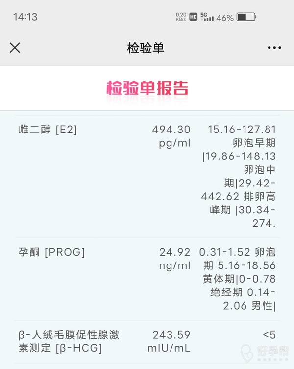 值还可以,建议隔天复查,看看翻倍情况
