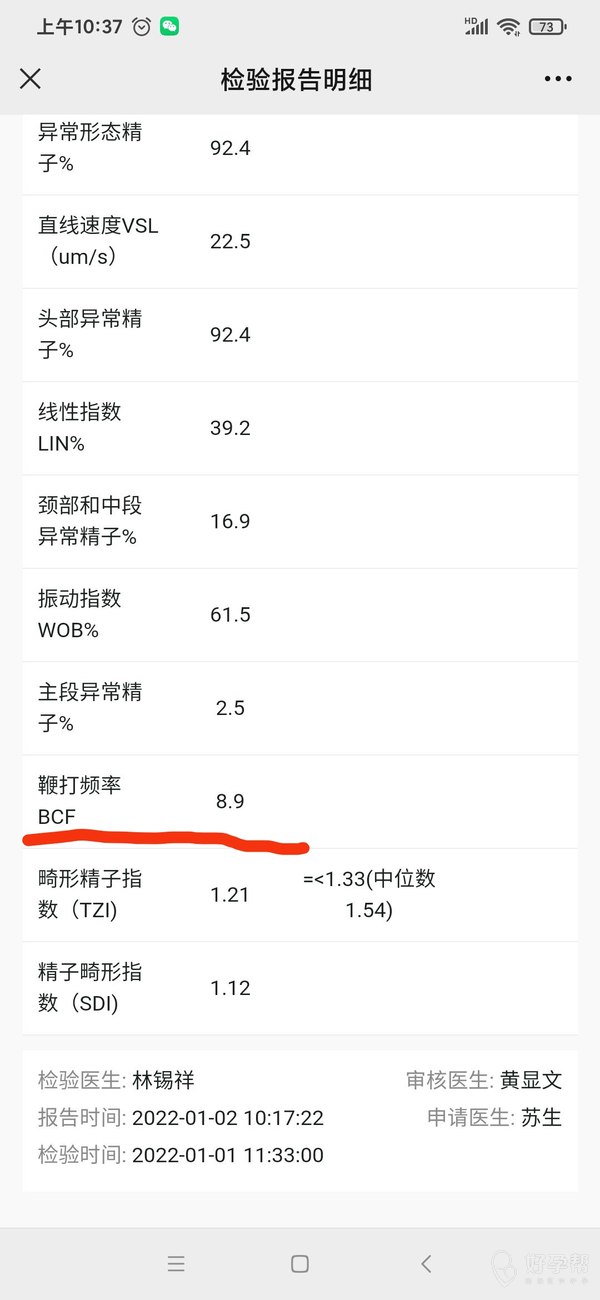 医生请问一下我这张精液检查报告中精子的鞭打频