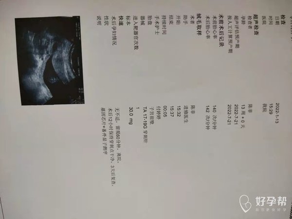 因为NT值高所以今天做了绒毛穿刺手术报告出来