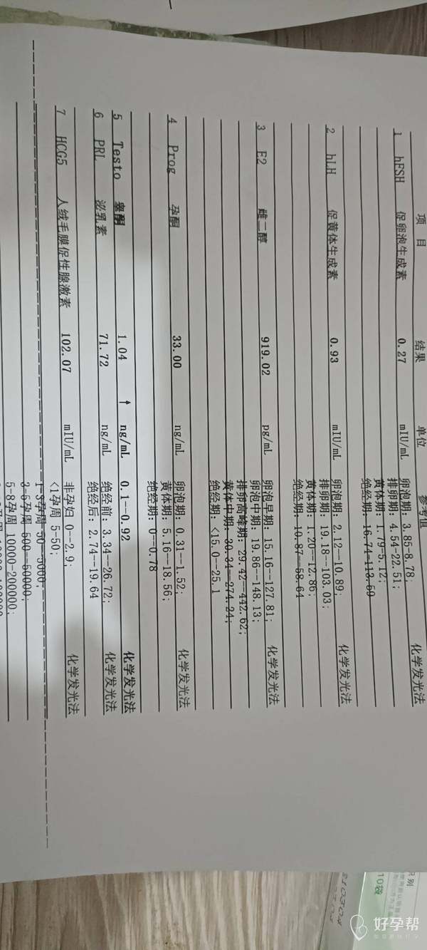 孕酮、雌二醇结果很不错,但是HCG100刚过,考虑排卵延迟的可能,建议隔日后再查一次HCG,看看翻倍情况。HCG到1500-2000时可以看到孕囊和卵黄囊。目前数值看不到正常。