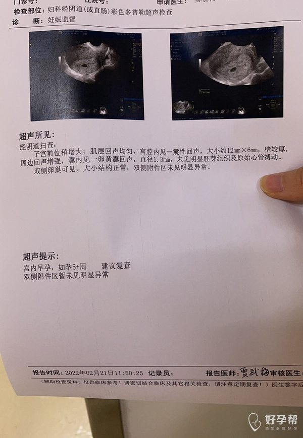 女性30岁2月8号检测出怀孕2月21号阴超显