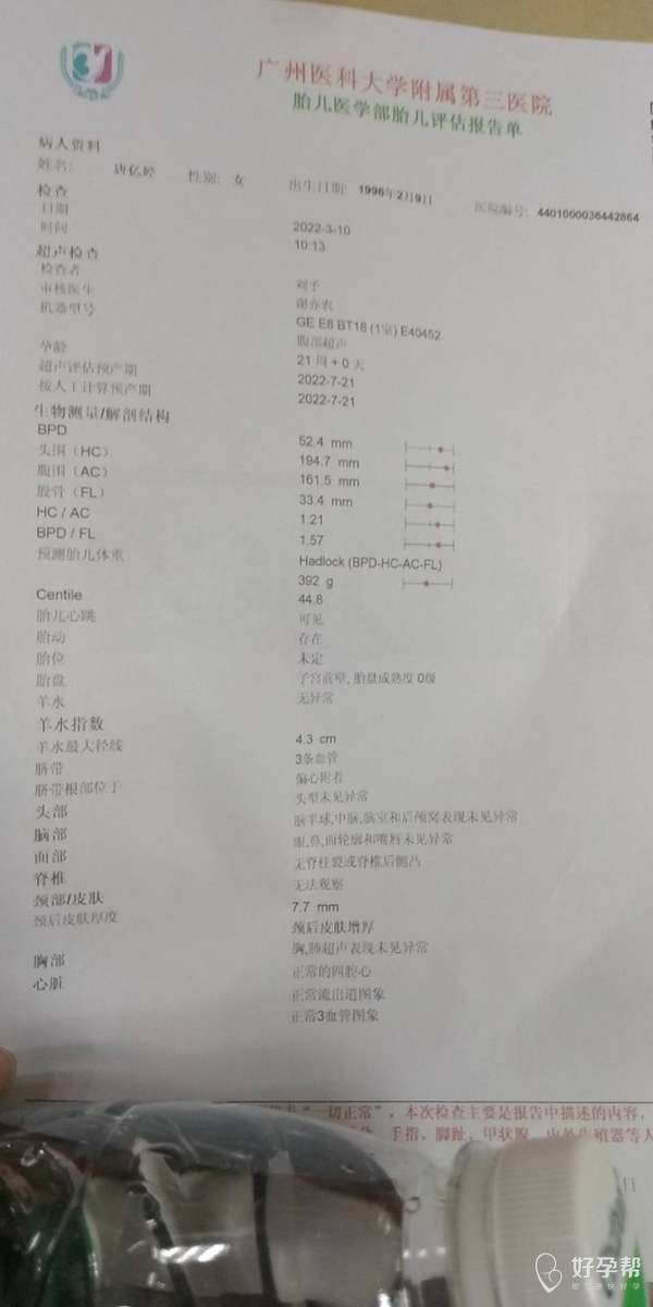 13周做Nt3.6 3.3 4.1 然后做了绒毛穿刺 结果出来都正常 16周做胎儿针对性器官超声检查出右侧脉络多丛性囊肿 今天21+做了三级b超 囊肿已经消失了 就Nf7.7 还需要做什么检查