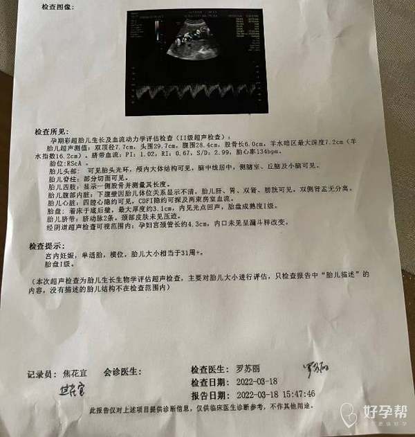 图像不是很清晰 只能看到宝宝横位 头部似乎在右上方