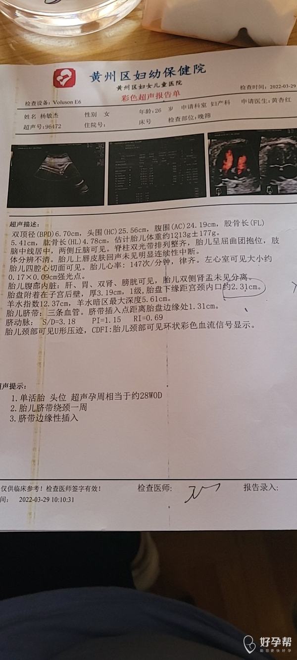 请帮我看看脐带绕颈一圈还有小排畸结果和强光点