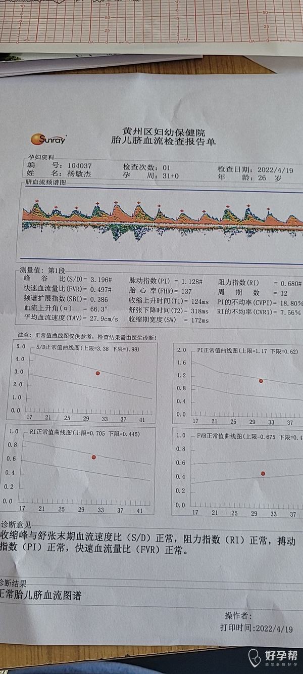 胎心监护像宝宝睡觉的图形,要连续再监护20分钟,宝宝的睡眠周期40—60分钟醒一次,脐血流检查都在规定范围之内。祝顺孕!