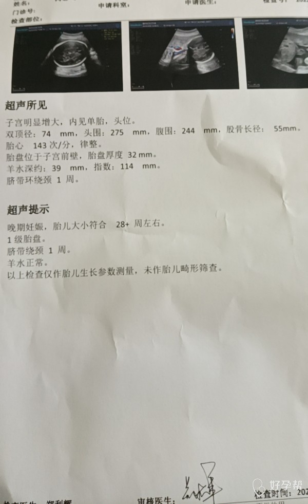 医生你好麻烦你帮我看看这张B超单的宝宝发育怎