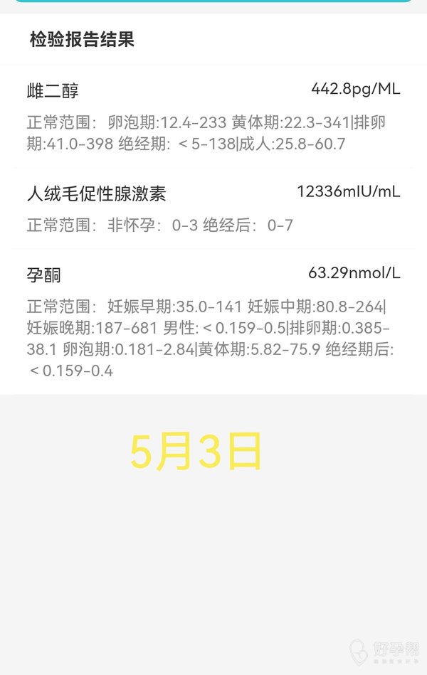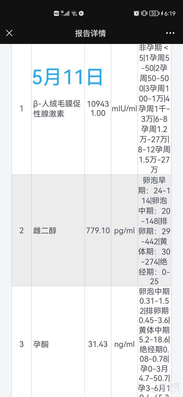 医生你好,这是我两次查孕三项的化验单。第一次是5月3日,这次是5月11日。能麻烦帮我看看我的数据吗?