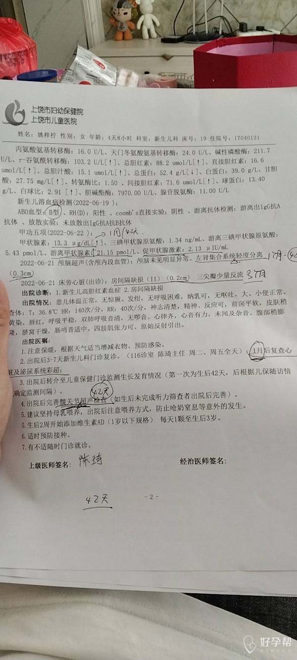 现在没有办法干预,只能灌肠随着 诊,42天复查甲功五项,满月后B超看看结合系统分离是不是消失,房间隔缺失3个月...