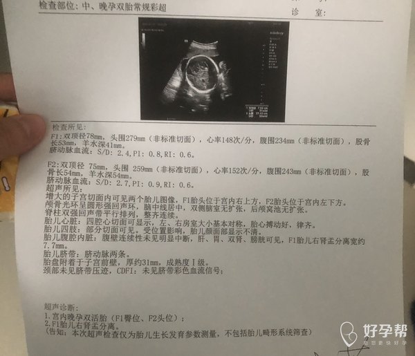 双胎孕29➕2可以看出胎儿体重是多少吗