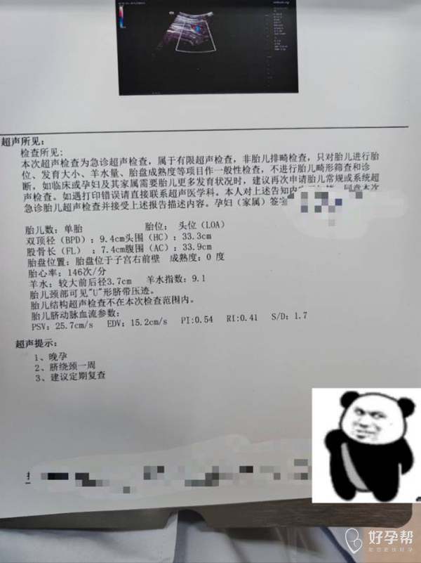 你好,孩子大小看着很好,有一圈绕颈,注意好胎动,羊水和脐带血流都正常,1周后产检,有异常阴道流血流液及时就医。平时可以适当多活动,祝好孕。