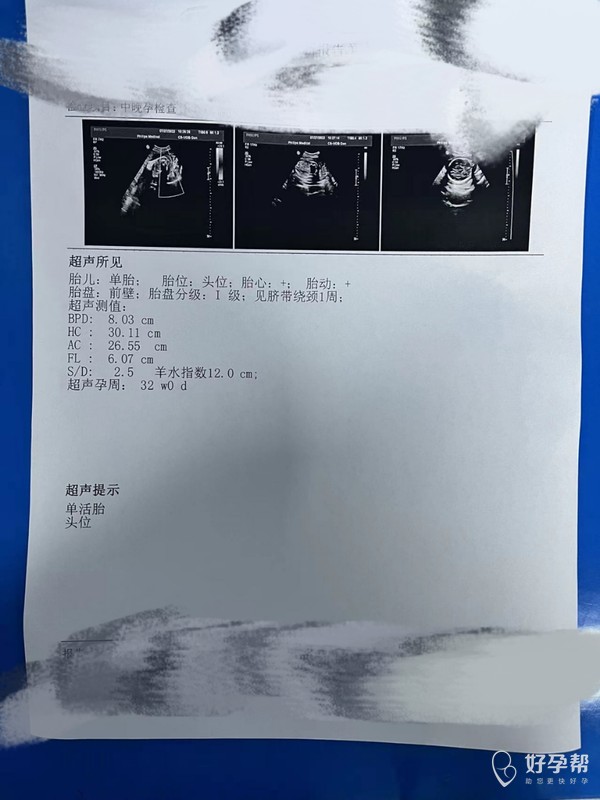 你好,孩子大小可以,腿不短,有一圈脐带绕颈,注意好胎动,快32周了,2周产检一次,36周后每周产检一次,祝好孕。