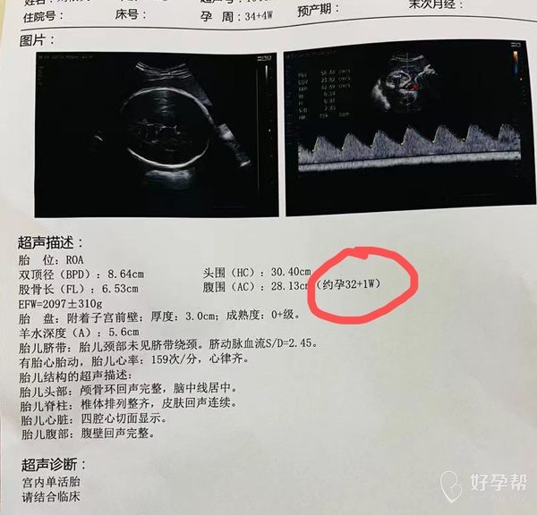 双顶径相当于34周,头围相当于33周,孕晚期如果是两周之内的差距,可以观察,改善营养,查找相关疾病并进行处理