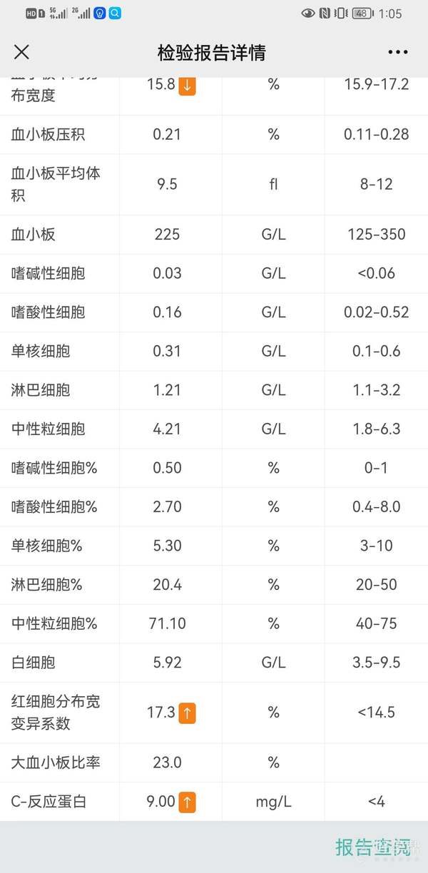不要紧,稍高。白细胞正常,遵医嘱应用抗生素。