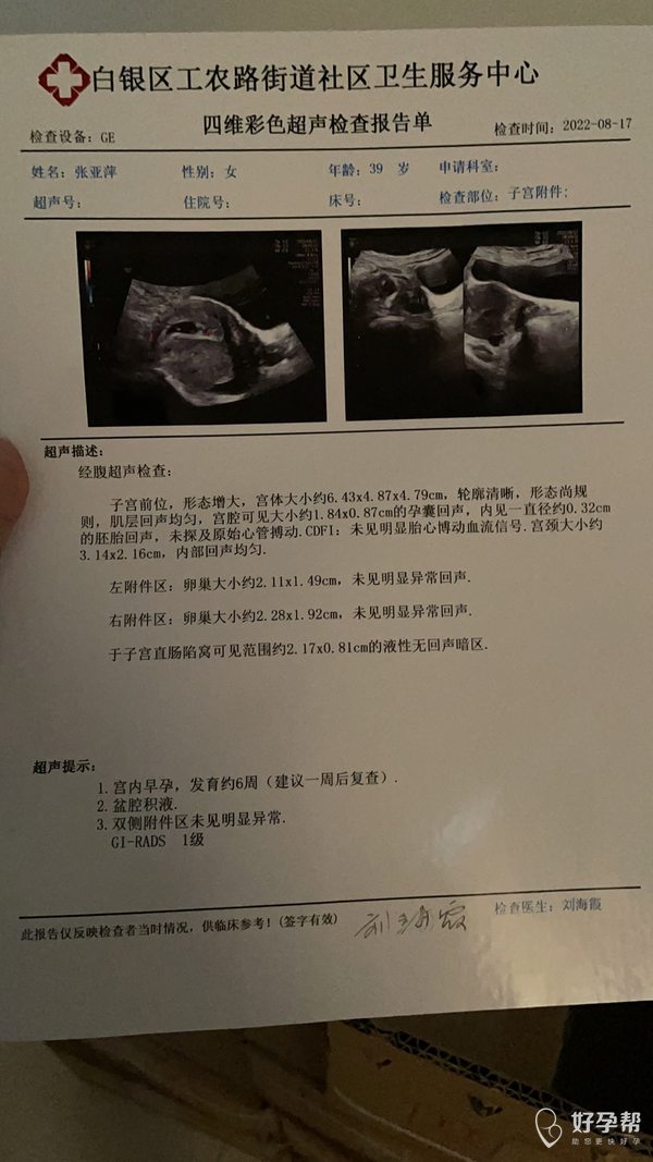 hyb_1655891566998回复周加林:今天做了阴超,显示胎停,卵黄囊长了一点,胎芽几乎没有涨,还是看不到胎心,还有希望吗