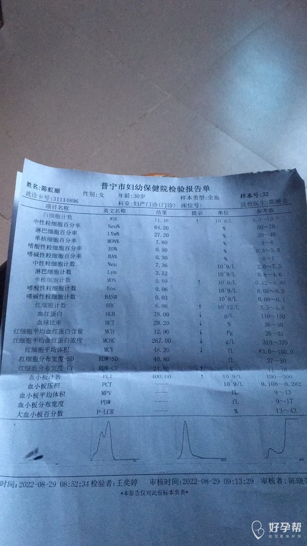 你这个是比较严重,中度贫血,红细胞总数正常,你们夫妻查过地贫基因吗?现在只能说是小细胞低色素性贫血,如果以前没有查过,需要系统检查,明确病因。现在多少周了?什么时候发现的贫血?