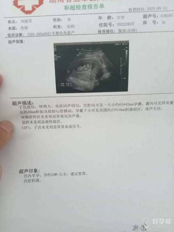 月经周期正常吗 ?如果月经周期正常,停经45天左右就可以看到胎芽及胎心,建议顺其自然,不要盲目保胎 。