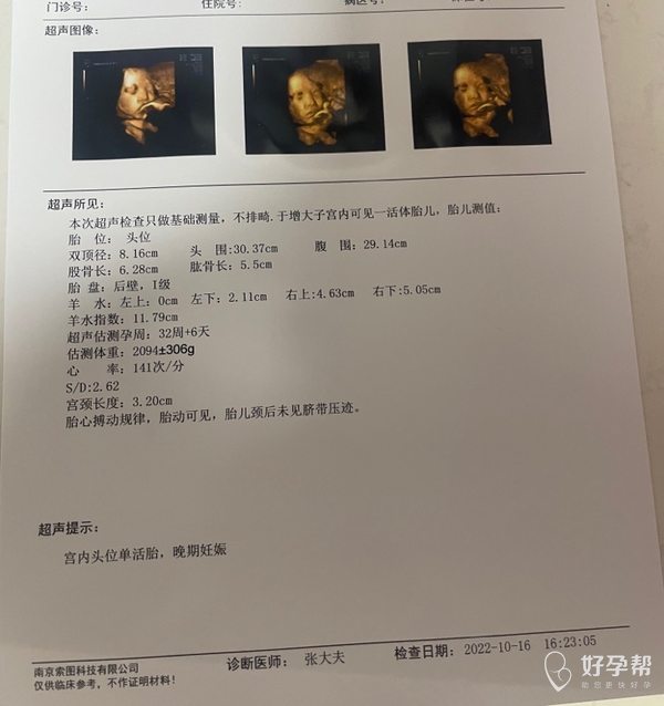 医生您好我目前怀孕怀孕34➕2天昨天去做了超