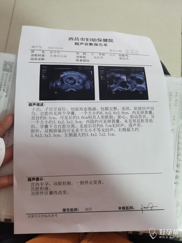 8月25日移植的2个鲜胚打阴超就有一个没有胎