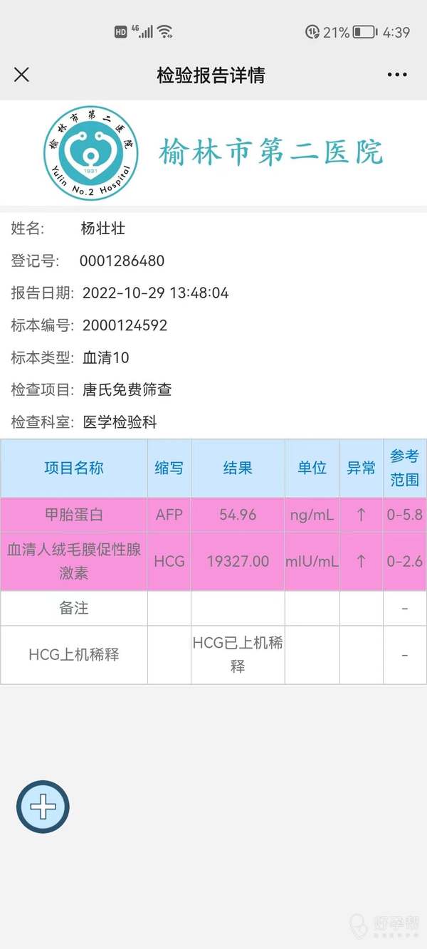 麻烦看一下这个唐筛报告怎么回事
