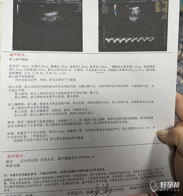 怀孕30周这个b超数值正常吗偏小多少天现在宝