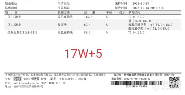 数值在低值。是否有血栓倾向,根据胎儿发育、不良孕产史、孕前检查、症状、病史等综合考虑。