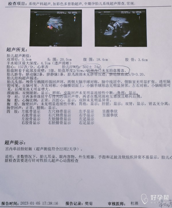 胎盘位置正常,不覆盖宫颈口,排除胎盘位置低的问题了。放松心情,加强营养,定期孕检。祝你好孕!