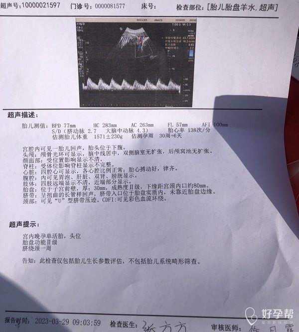 孕30+3做的彩超有问题吗
