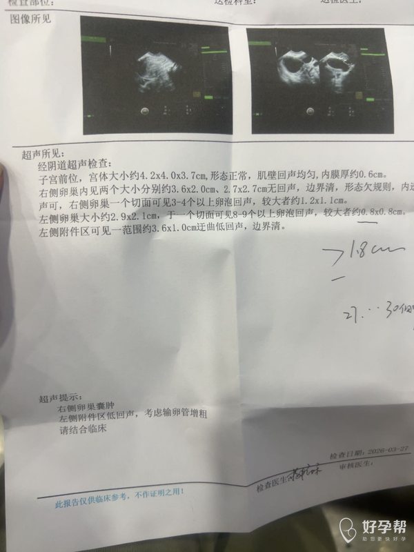 造影结果哪一侧输卵管不通?男方精液有问题吗?彩超提示左侧输卵管有积液,右侧有囊肿。卵泡检测过几个周期,有没有排卵