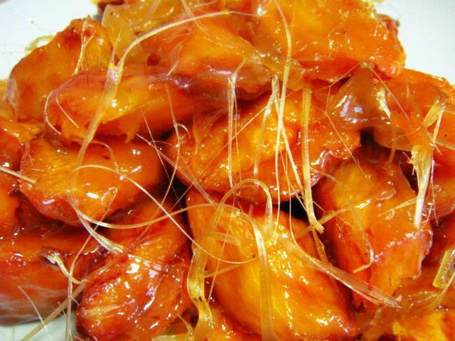 再来上图我做的甜品,拔丝红薯,这个是我超好吃的,我做这个已经好几年了,从最开始的连丝都拔不出来,到现在这样。都是练出来的