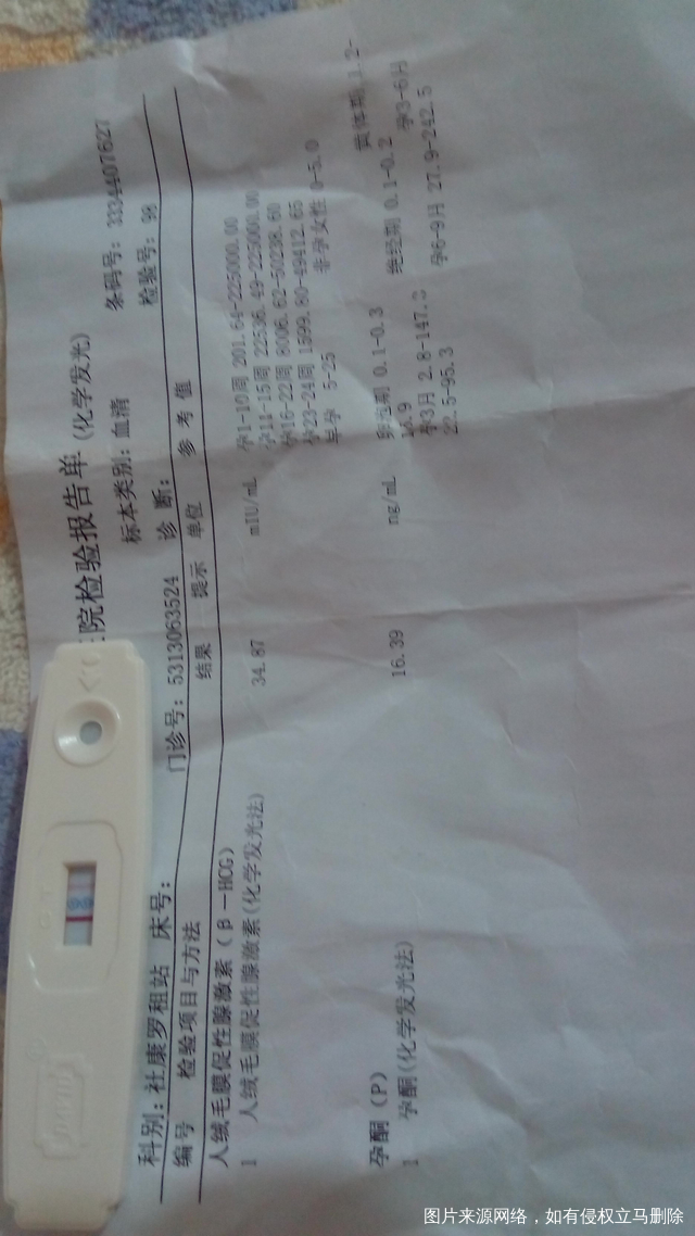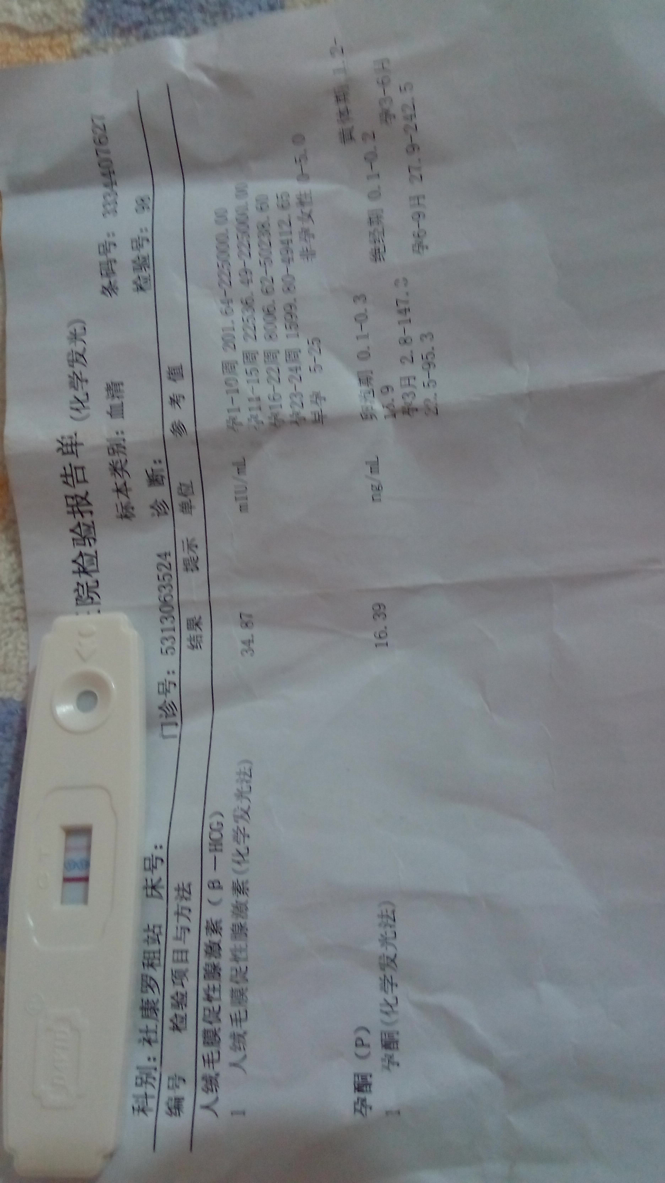 过了两天我去医院抽血检查了,检查结果出来后,医生说是hcg值太低了,做B超也看不出来,做不了b超,让我过一个星期再去检查。要是hcg值翻倍了,那就没事了。