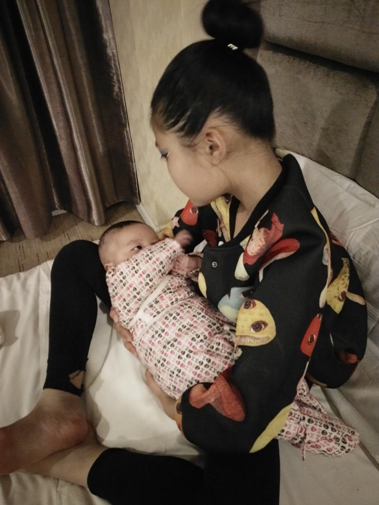 虽然有了小宝,但是我也不会疏忽女儿,我不能让女儿觉得有了弟弟,她连和我睡一块的机会都没有了。我让她那晚上睡我房间了,女儿怕挤到弟弟,要求睡到床尾,即使这样,她也是开心不已的。