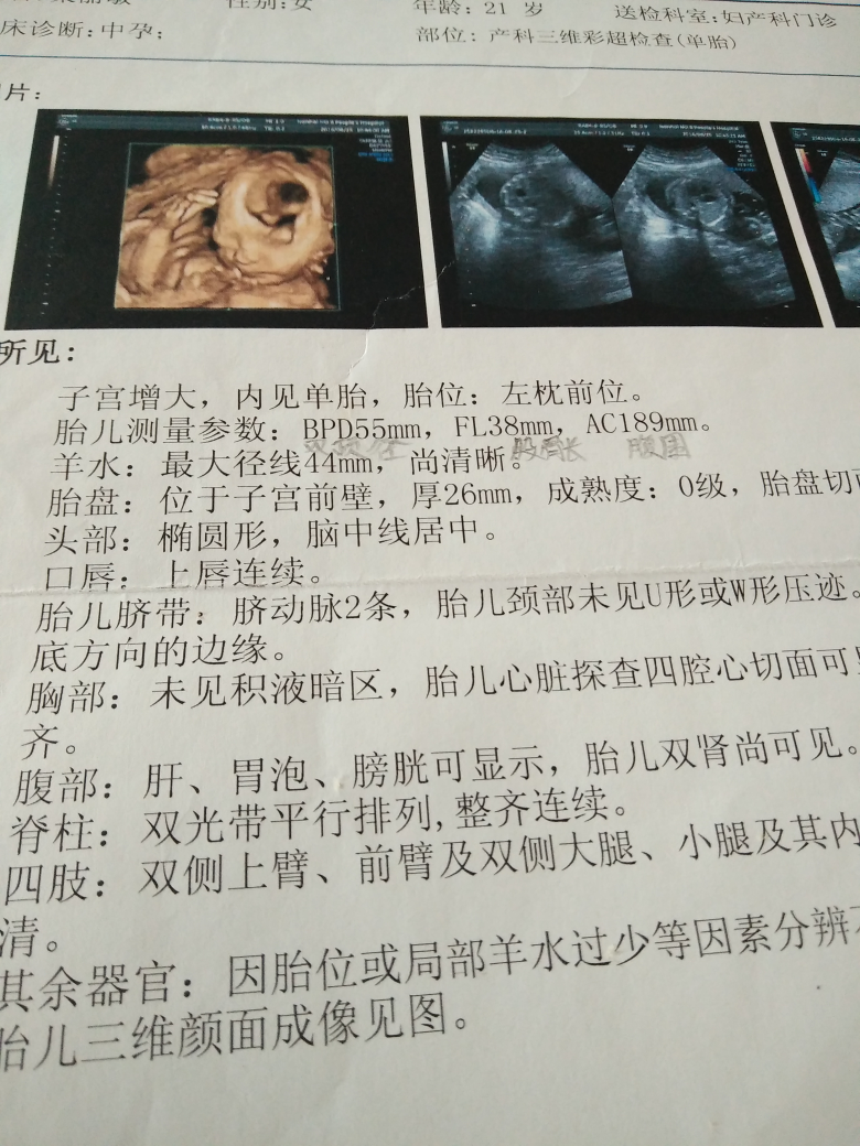 23+4做的24周的三维B超,胎儿测量参数属于正常吗?