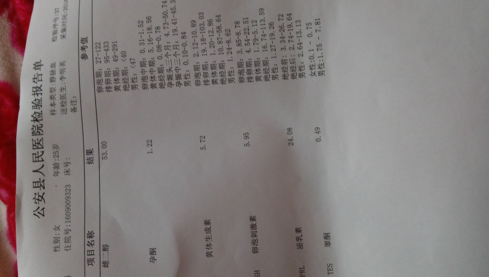 月经量少,月经第五天抽血检查的结果,帮我看看有什么问题吗