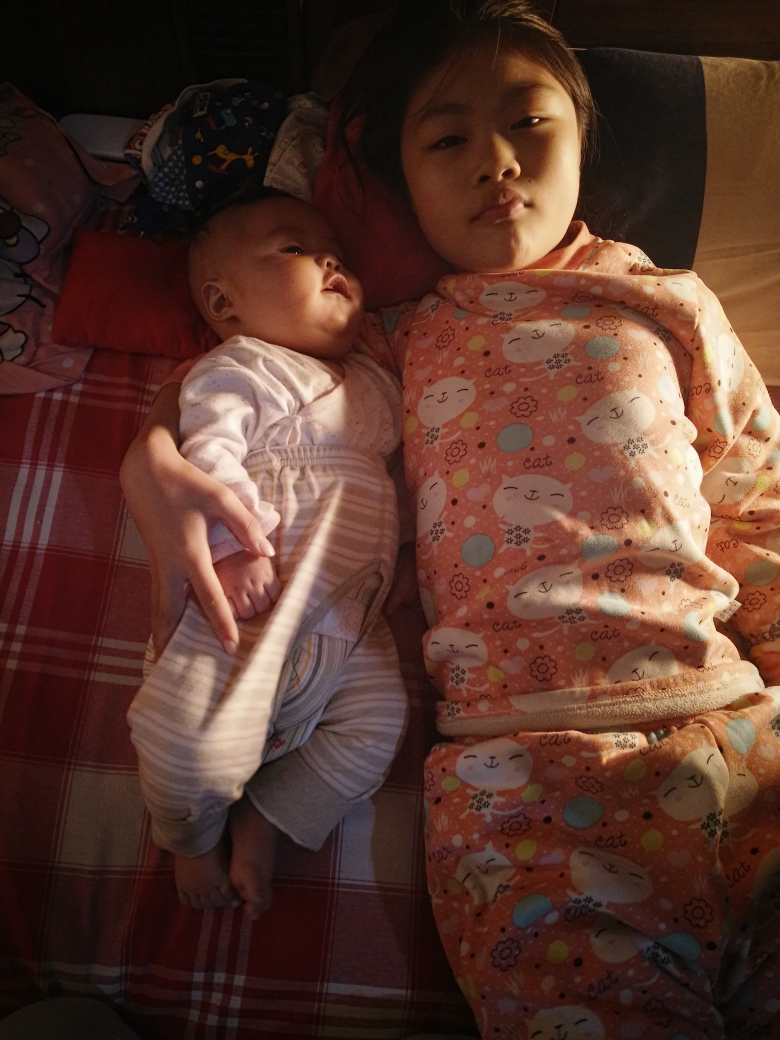 [爱心]而在这个世界上,我最最心疼的人,就是我家大宝,觉得她特别可怜,生下来就不受重男轻女奶奶的疼爱,十年了,婆婆还不曾给我女儿买过一双袜子呢,大宝是我一手带大,对我也特别依赖。其实习惯了,想开了,也没什么,大不了自己的孩子自己爱。