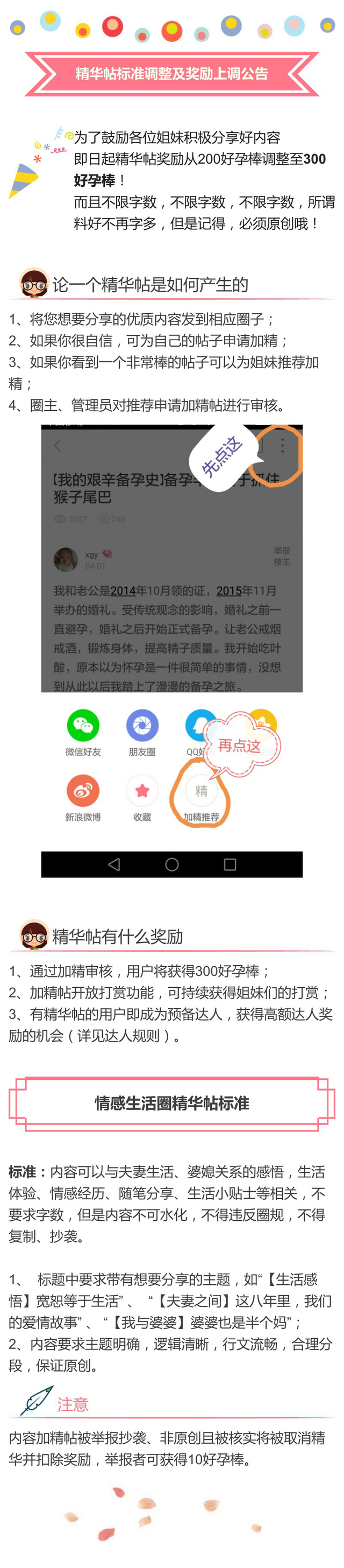 精华帖奖励调整为300好孕棒一篇,好孕棒赞赏修改为只对所有精华帖可以开放。