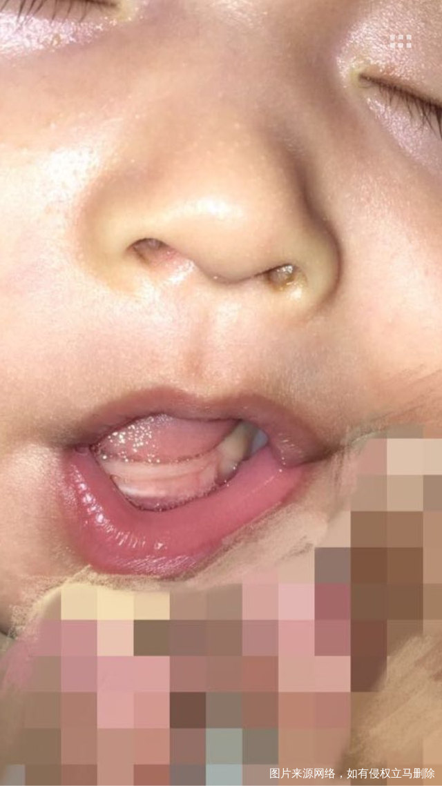 宝宝八十天了,发现牙龈黄白色,流口水,哭闹不吃奶,求大夫看一下