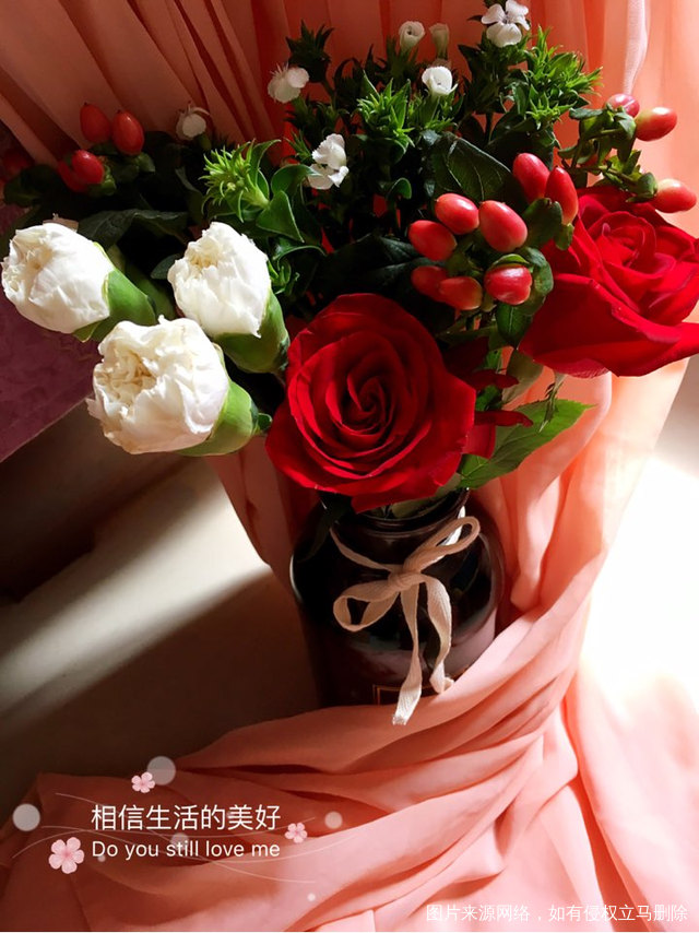 我想我的生活需要一些色彩,我为自己定了一个月的鲜花,一周一次,每次随机。第一周,我收到了红玫瑰,白色康乃馨,石竹,红果金丝桃。有象征爱情,有象征母爱,相信这束花的美好寓意也会是我的生活美好开始。收到花自己修剪枝叶,插瓶,就像收拾心情,把最美好的一面呈现出来,花朵美美的摆在屋里,我忍不住多看几眼,心里也很舒服。前几天阴郁的心情也慢慢变好。