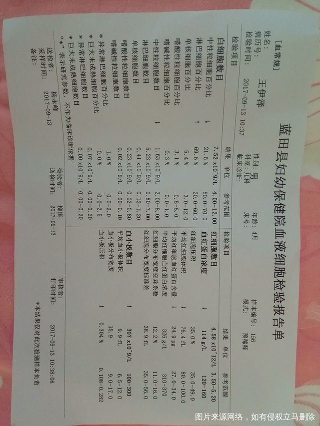 麻烦医生看看这个化验单,宝宝是不是有点贫血,还有宝宝是母乳喂养的,妈妈食补可以吗?还是需要宝宝吃点补血的药呢?