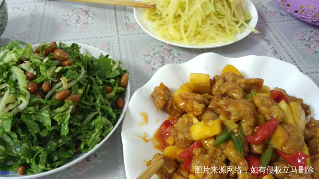 想吃锅包肉,但是今天没大里脊,那就换小里脊做肉段吧,买完肉一回身发现卖菠萝的,马上买一个,改做菠萝咕咾肉了[抠鼻]做好后,让老公帮拍张照,等我端其它菜上桌时,发现被偷吃,[调皮],,,刚吃完,这盘菜光盘[得意][得意]