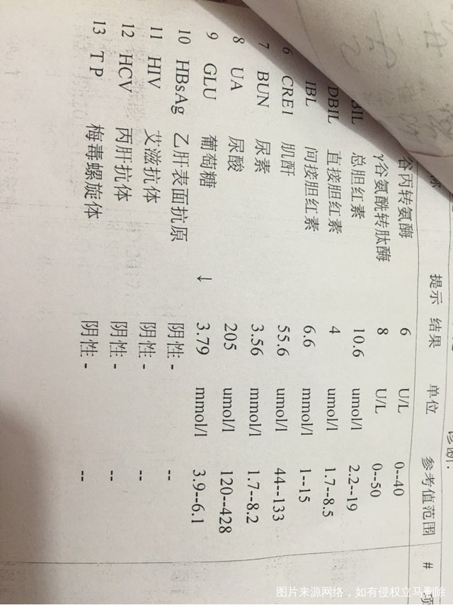拿到单子 医生啥也没说 有一项(葡萄糖)箭头朝下 什么意思