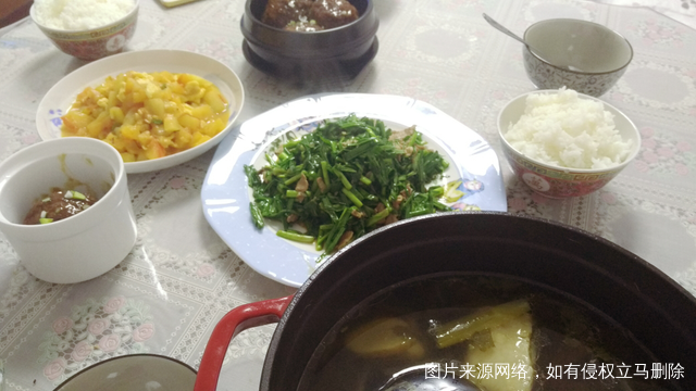 晚饭一个狮子头,配碗白米饭